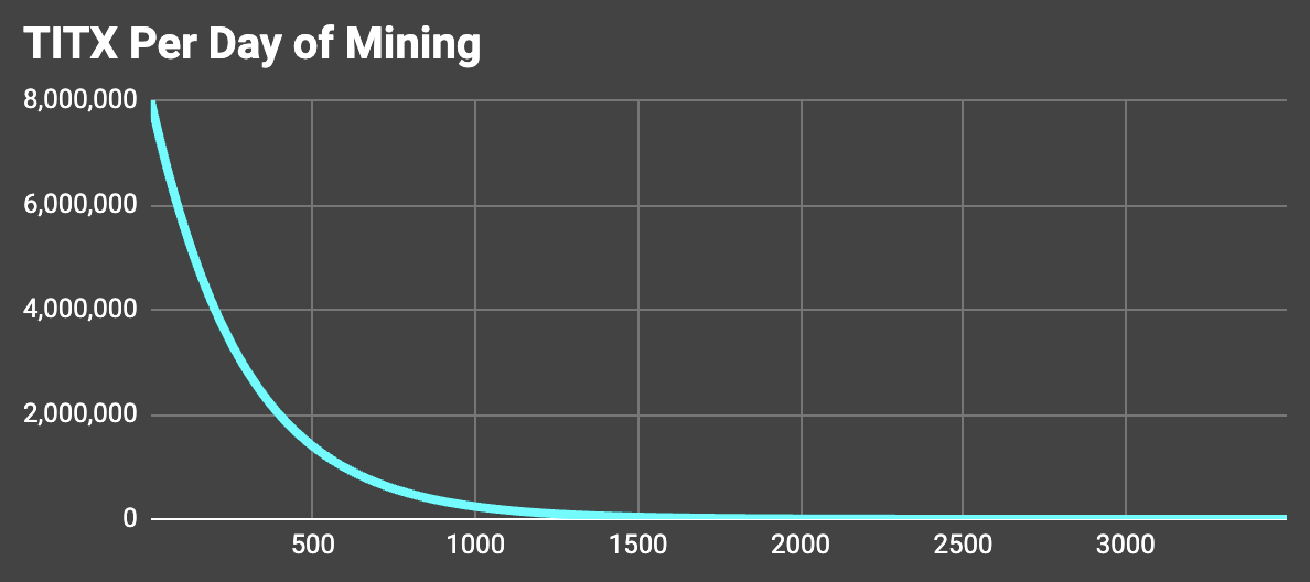 * **TITANX Mineable per Day of Mining goes down -0.35% every day** based on day before